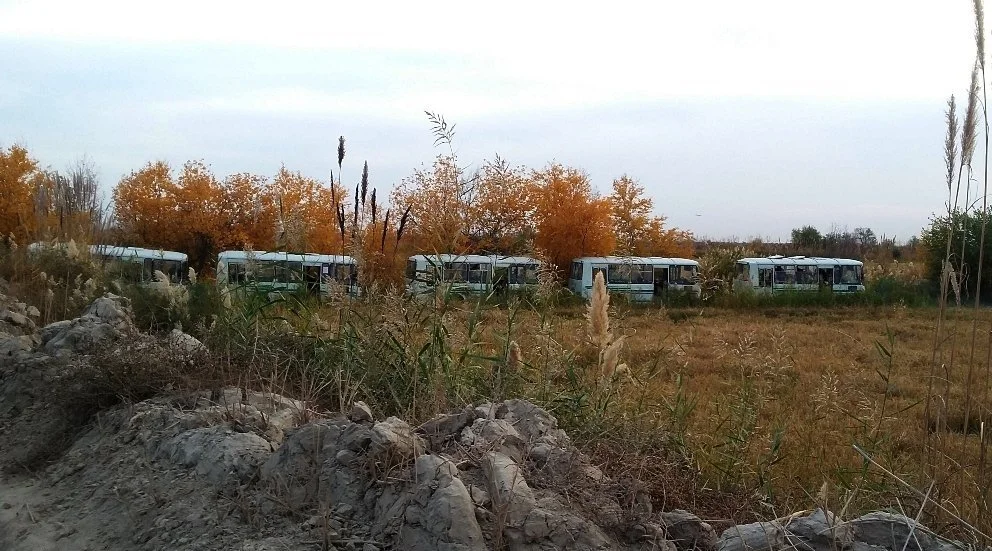 Turkmenistan: Buses transporting public sector workers to the cotton fields during the 2016 harvest